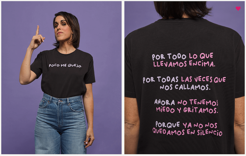 Camiseta ‘Poco me quejo’ pone palabras a generaciones de madres que aprendieron a aguantar, a minimizar, a restar importancia a su propio cansancio.