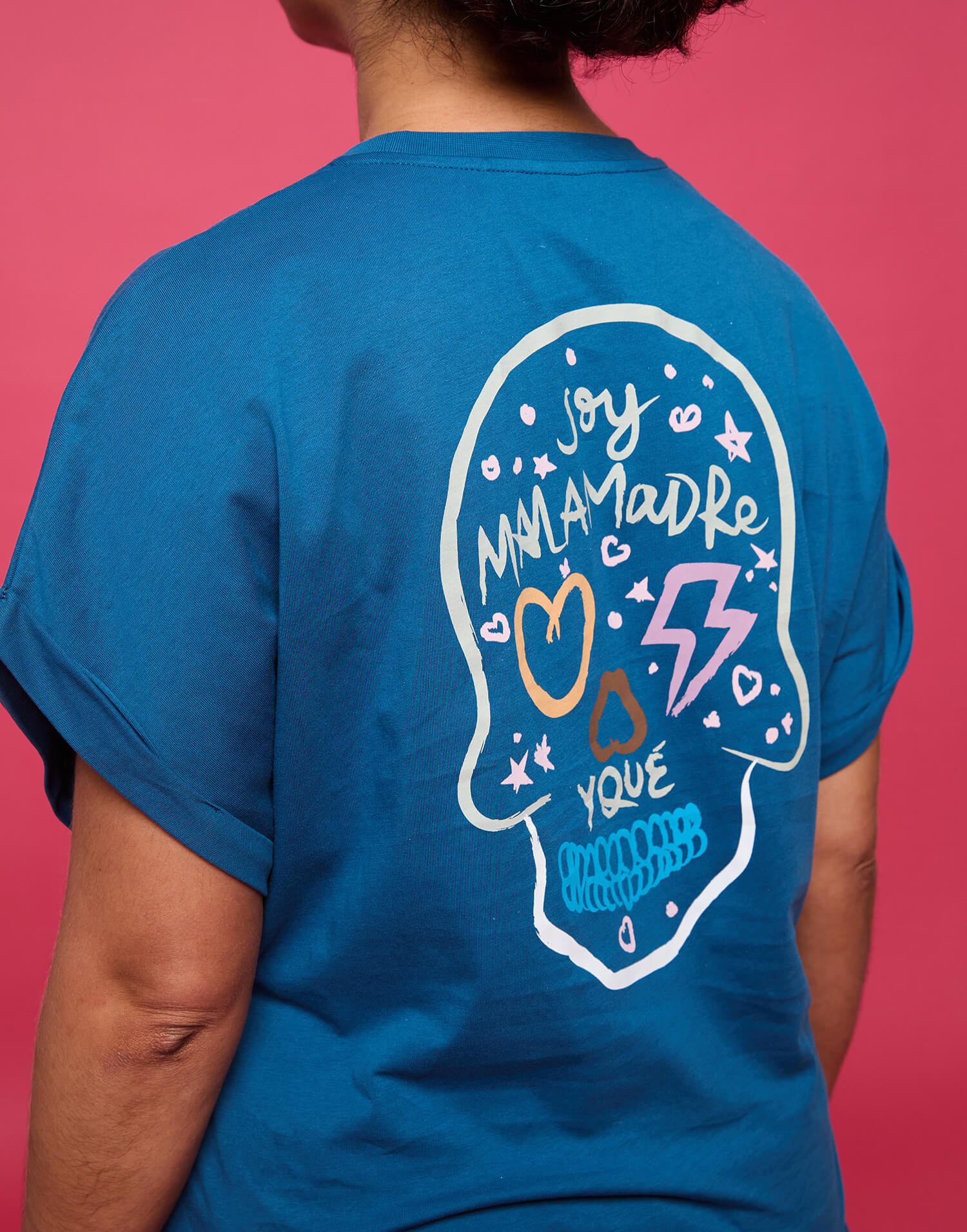 La Camiseta Azul Calavera llega con energías renovadas, cómoda, cañera y con ese toque rebelde que nos recuerda que ser Malamadre también es una actitud.