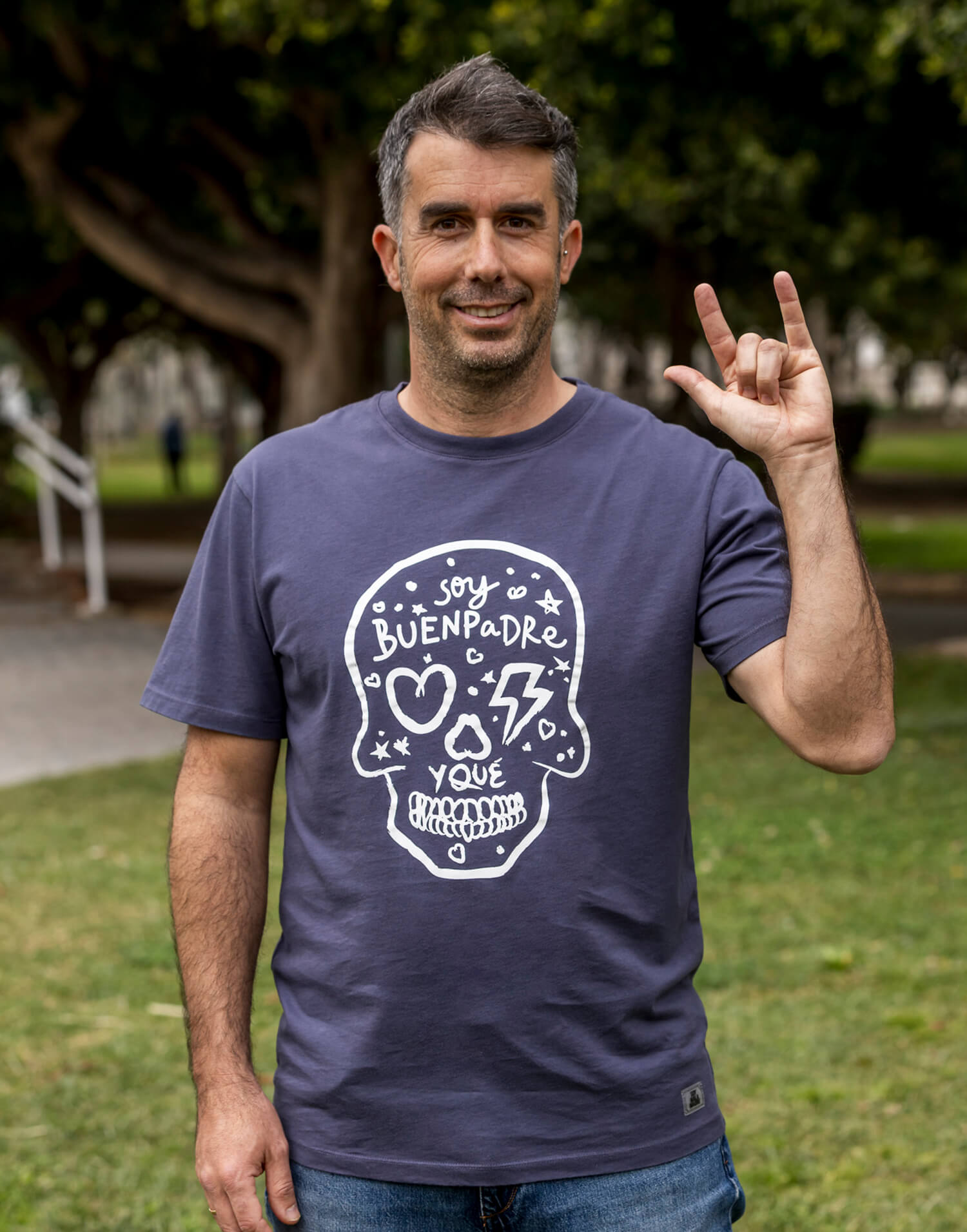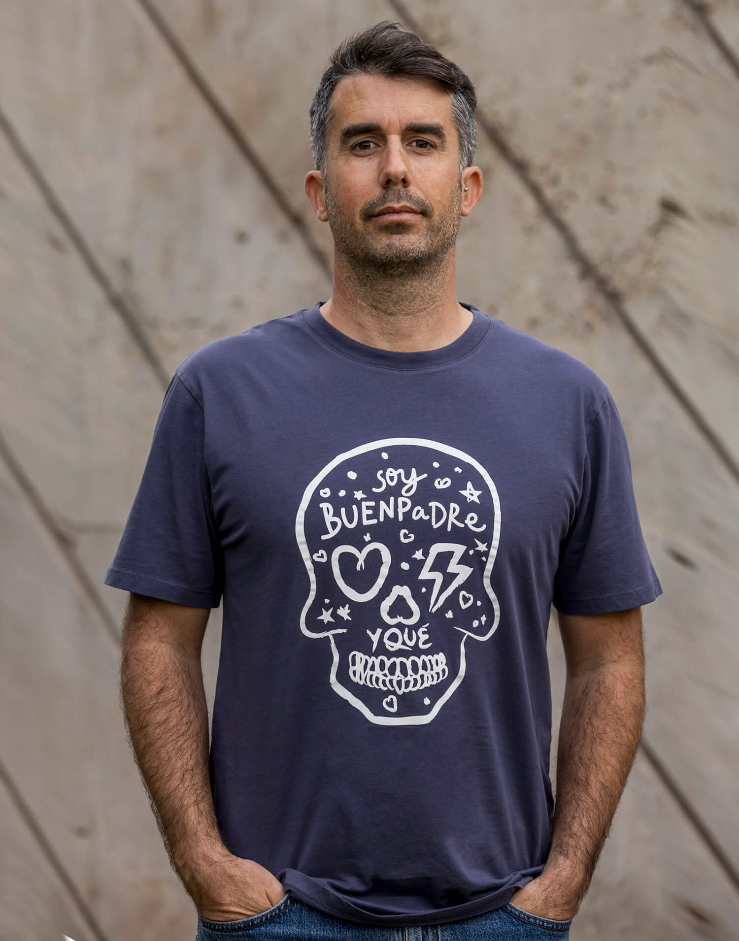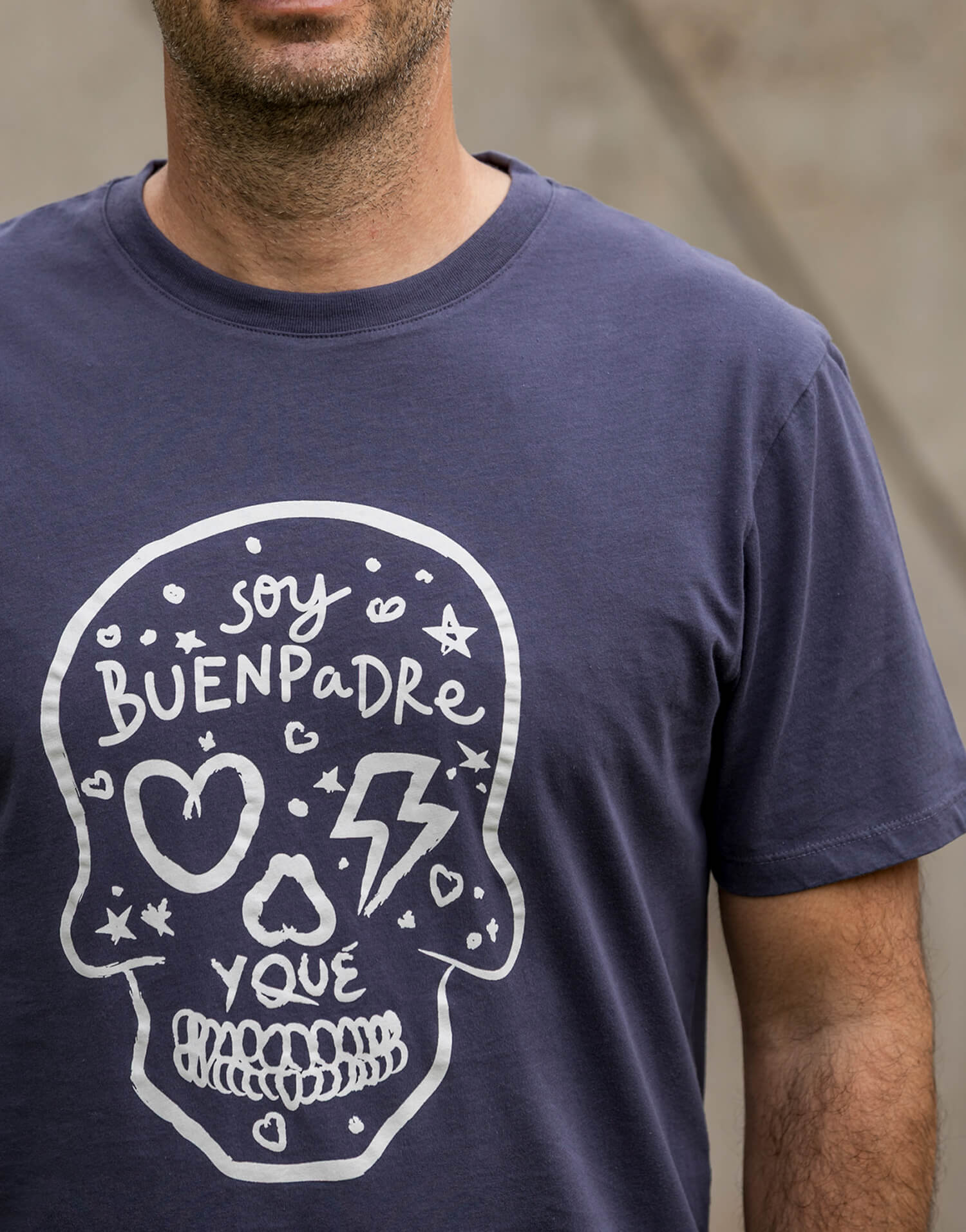 Esta camiseta con la icónica calavera Buenpadre representa a los que han entendido que la paternidad no va de ayudar, sino de implicarse de verdad. De compartir la carga, de sostener, de estar presentes y de hacer equipo cada día con las Malasmadres.