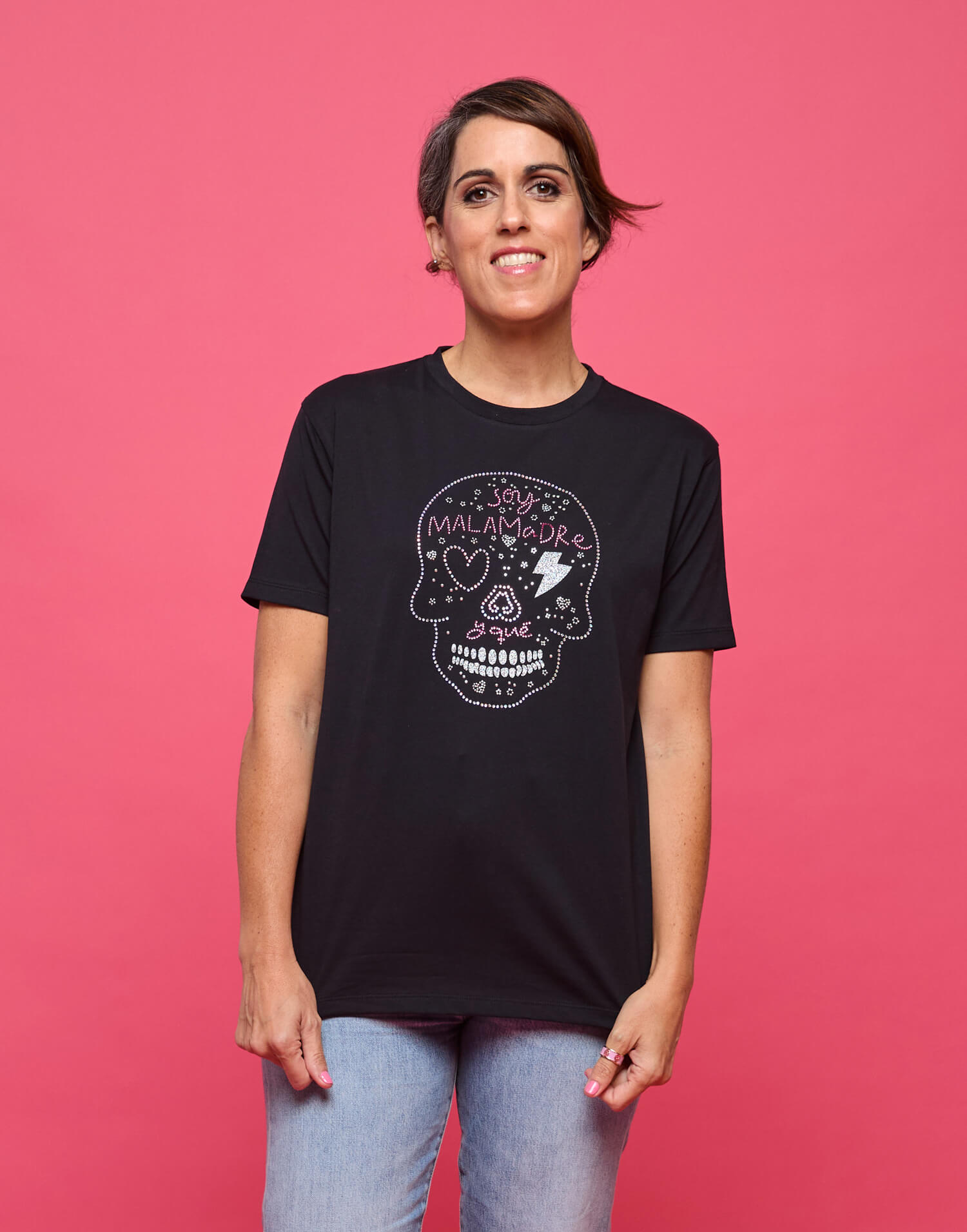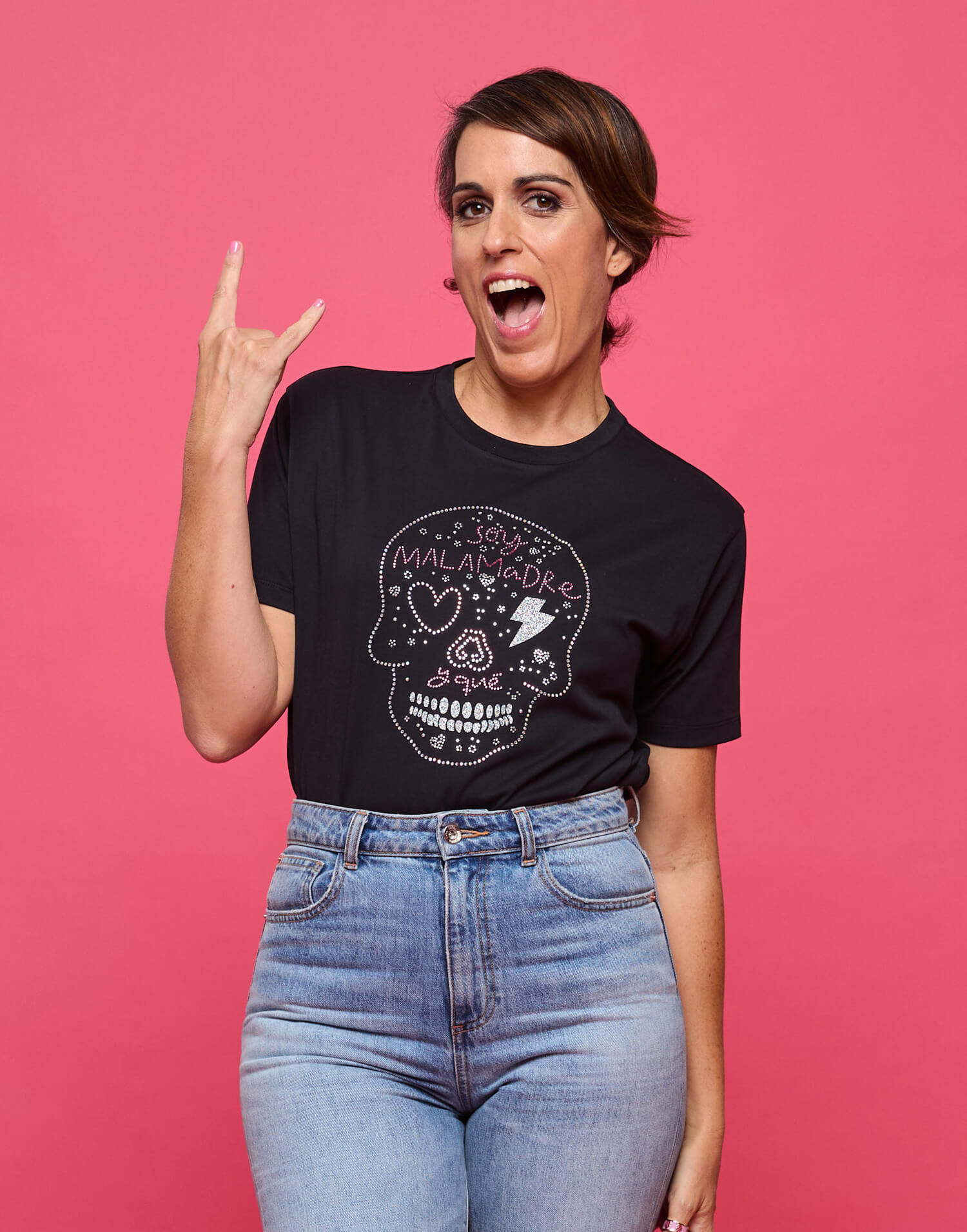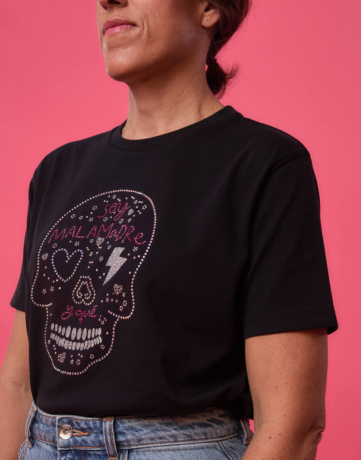 La calavera viene reediseñada y esta vez con piedrecitas rosas y plateadas para darle ese estilazo rockero a tu look. ¿Te atreves con ella?
