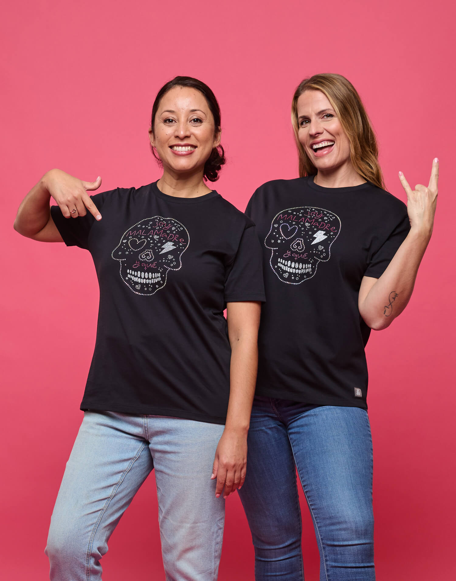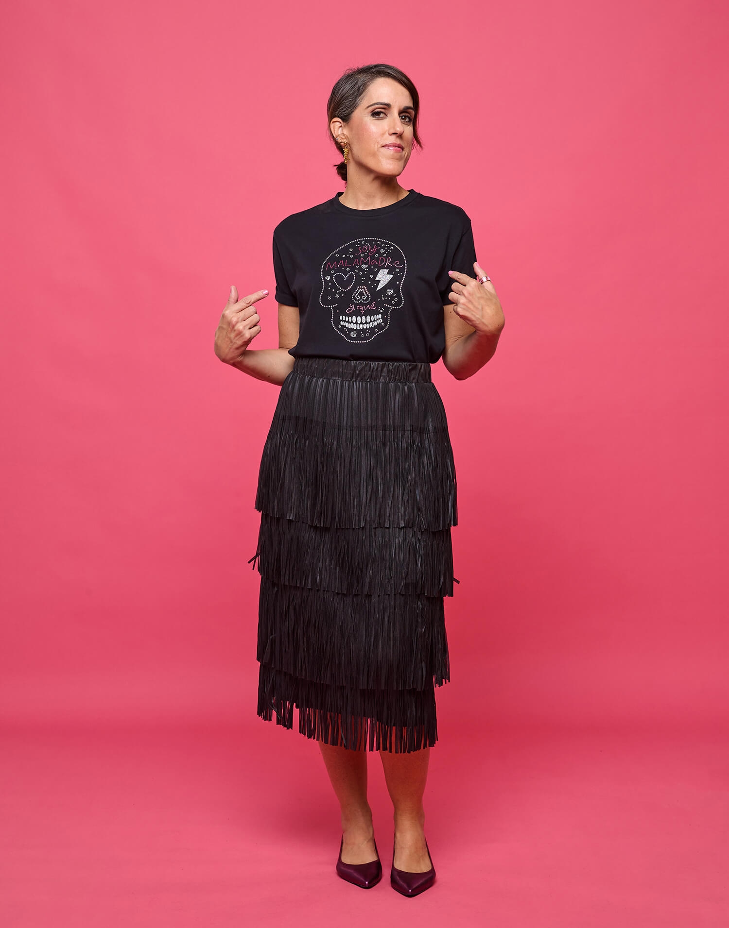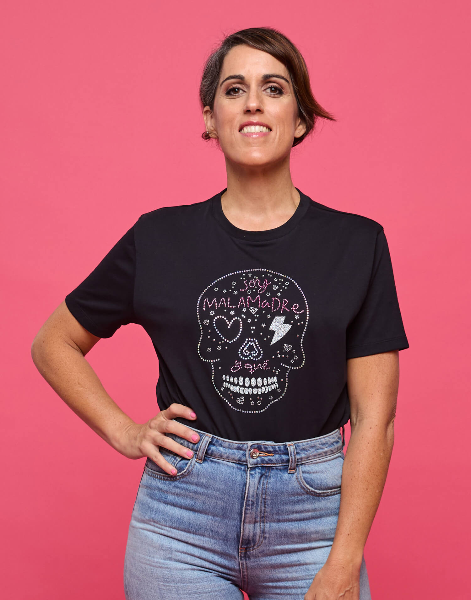La calavera viene reediseñada y esta vez con piedrecitas rosas y plateadas para darle ese estilazo rockero a tu look. ¿Te atreves con ella?