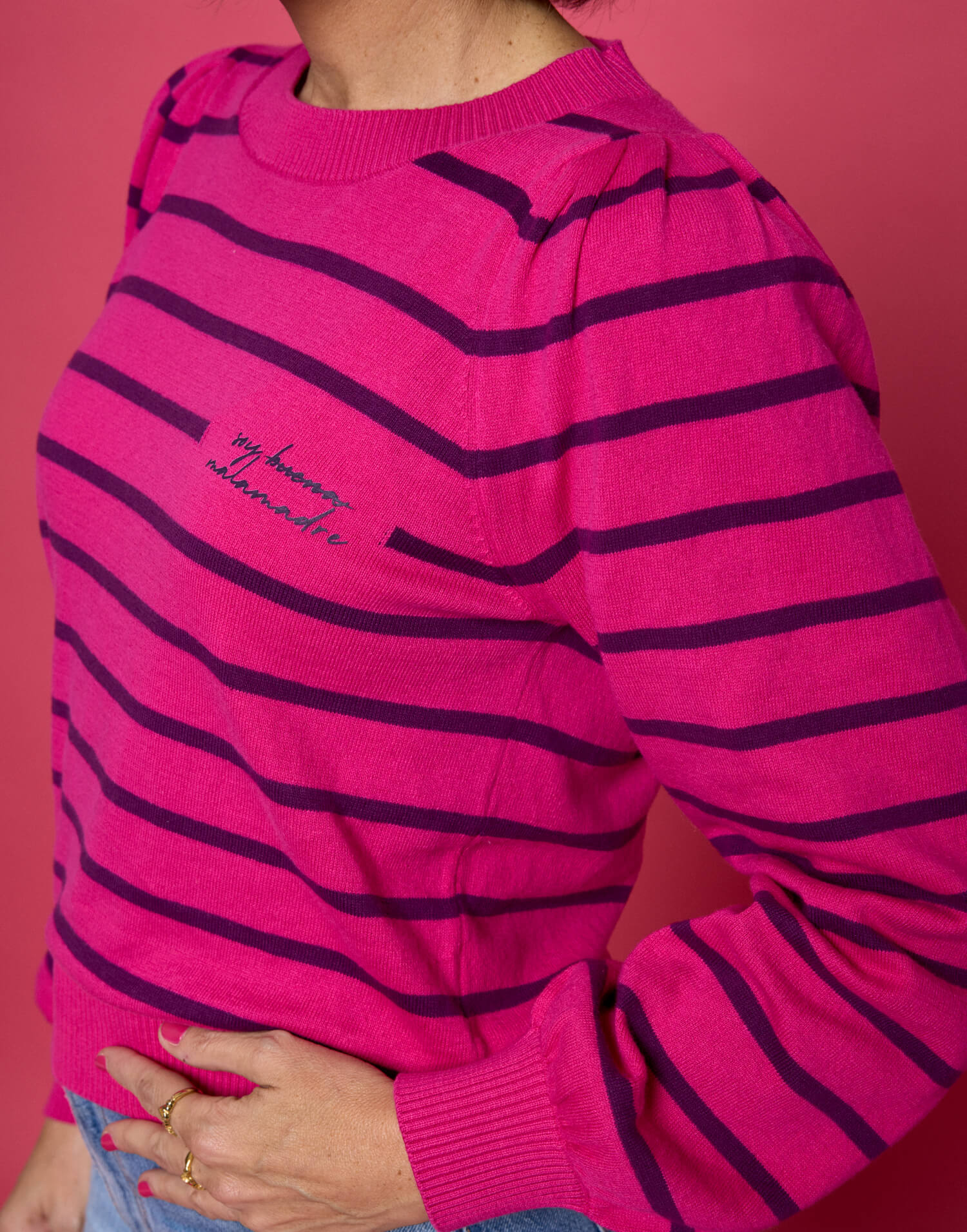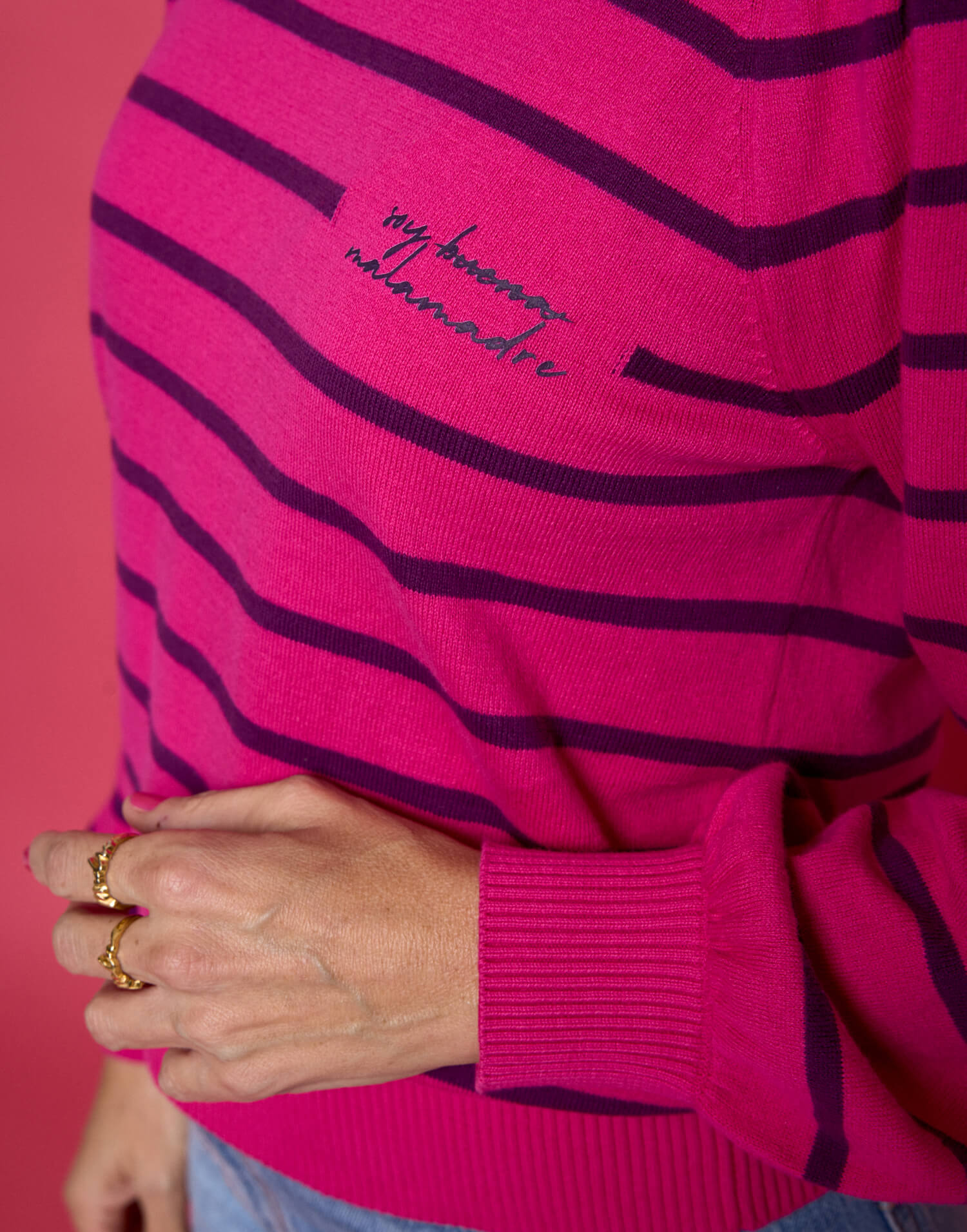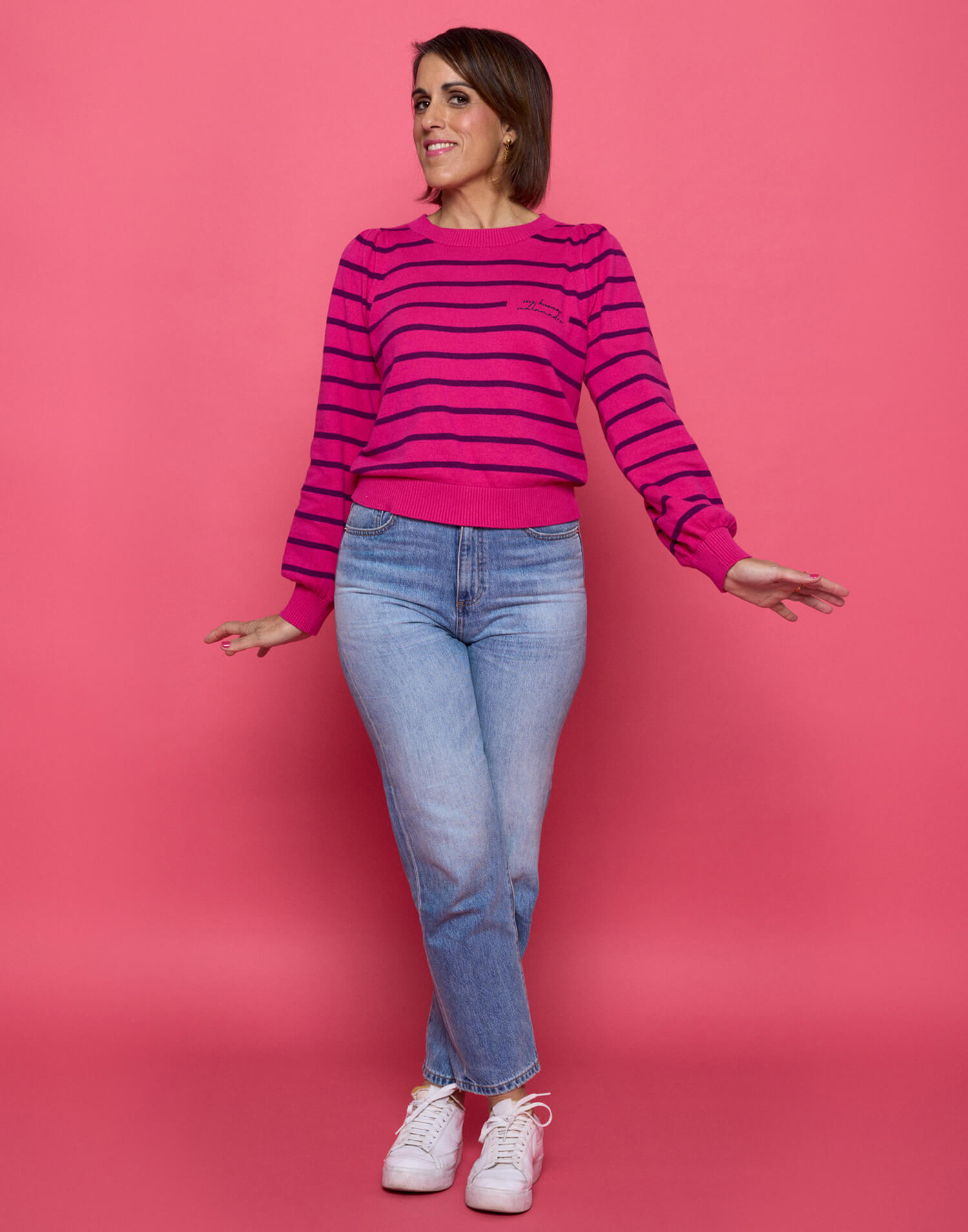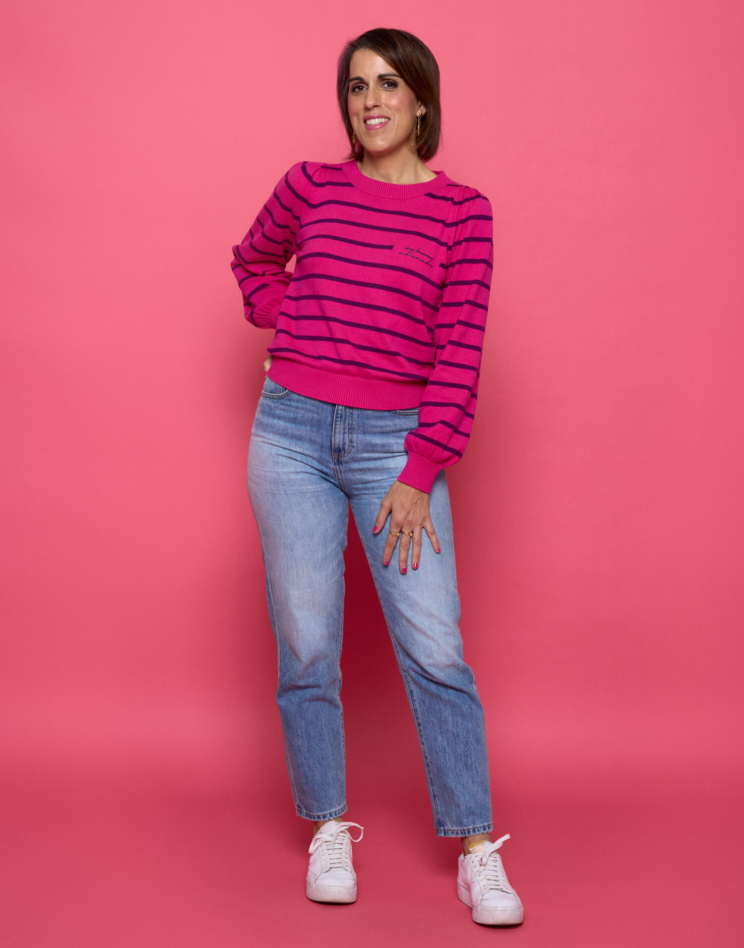 El jersey rosa “Soy Malamadre” te da subidón y alegría: suave, favorecedor y con un toque de humor para recordarte que ser Malamadre también es quererse. Con su  diseño cómodo y sus mangas especiales, es perfecto para llevar actitud incluso en los días de “no puedo más”.